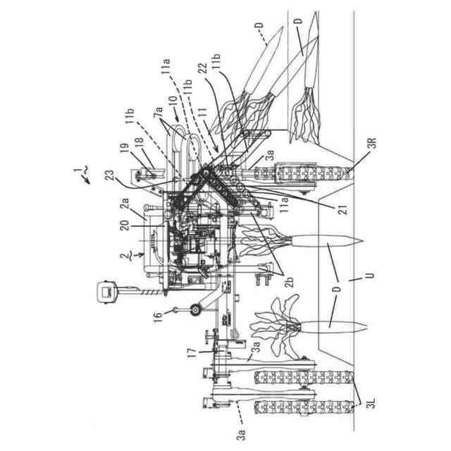 また、排出搬送装置10を固定側走行装置3R上方に設けたので、排出機構が簡潔な構成となる。