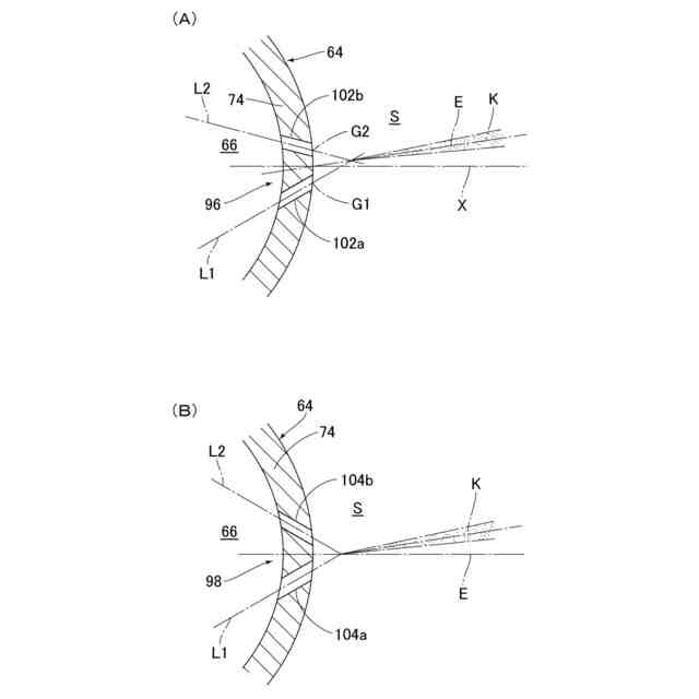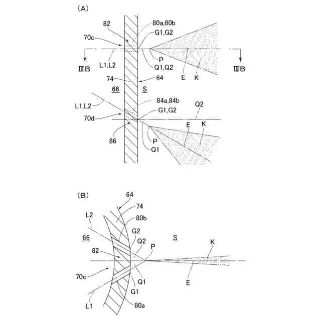 一対の前記噴射孔のそれぞれの中心線を含む仮想平面を第1基準面とし、一対の前記噴射孔のそれぞれの中心線と前記噴射孔が形成されていないと仮定したときの前記壁部の仮想外面とが交わる点を基準点とし、2つの前記基準点を含んで前記壁部の厚さ方向に広がる仮想平面を第2基準面したとき、