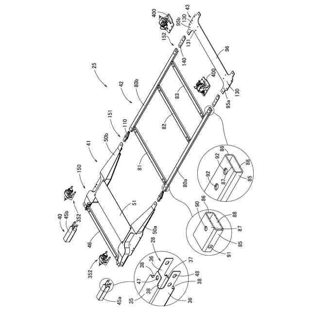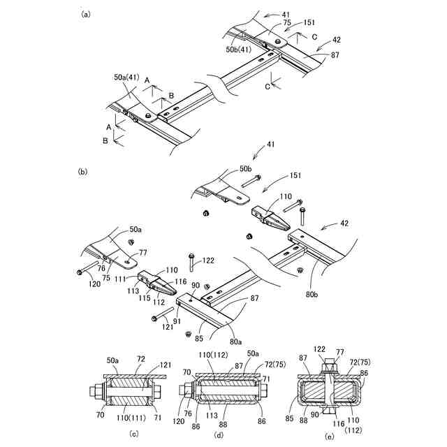 前記支持部材の少なくとも一方には前記車台の長手方向にのびる縦壁部があり、当該縦壁部に切り欠き部又は開口部があり、