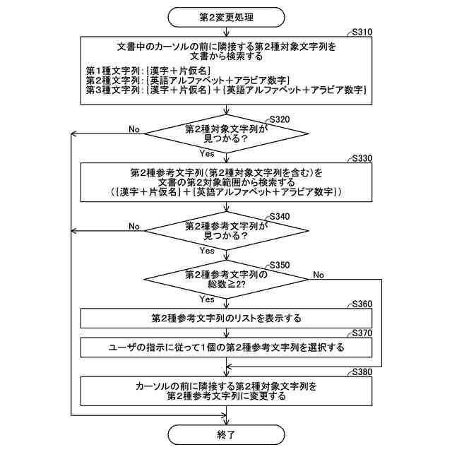 前記第2種変更機能は、互いに異なる複数の第2種参考文字列が見つかる場合に、前記複数の第2種参考文字列からユーザによって選択される第2種参考文字列に、前記第2種対象文字列を変更する、