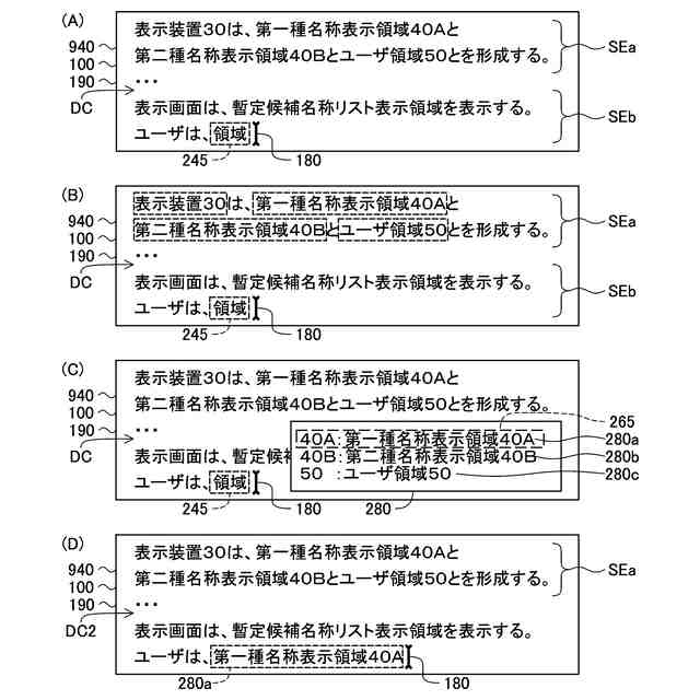 報告書、契約書、論文、取扱説明書、特許出願書類など、種々の文書が作成される。文書を作成するユーザは、文書の内容を検討し、文章を推敲し、誤記などの不具合を見つけて修正する。適切な文書を作成するためのユーザの負担は大きく、負担軽減のための技術が提案されている。例えば、特許文献1に記載の技術では、コンピュータは、文書中の符号を抽出し、符号に隣接して配置された文字列を抽出し、符号と符号の抽出位置と抽出文字列とを一体に取り扱うレコードを、符号をキーとしてソートし、符号に隣接して配置された一定長以下の文字列とその符号と符号の抽出位置とを、ソートされたレコードの順に表示出力する。