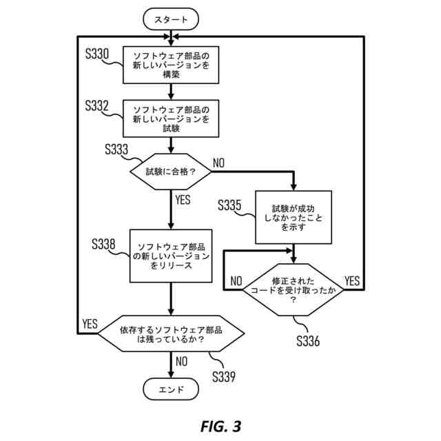 図3は、本開示の少なくともいくつかの実施形態による、ソフトウェア部品の新しいバージョンを構築するための動作フローである。