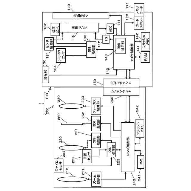 図1は、実施形態1に係るデジタルカメラ1の斜視図である。図2は、デジタルカメラ1の構成を示すブロック図である。デジタルカメラ1は、カメラ本体100とそれに着脱可能な交換レンズ200とから構成される。