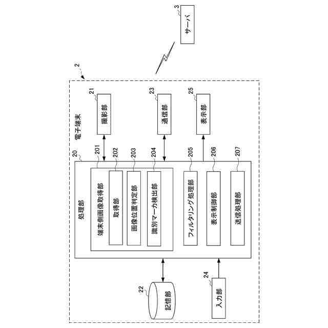 前記フィルタリング処理部は、前記画像取得部によって取得された前記識別マーカに対応する画像が前記適合画像であるか否かを判定し、