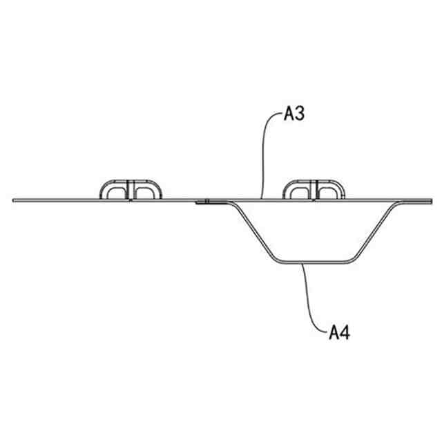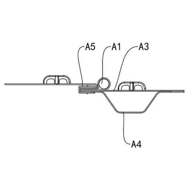 カバン分野では、伸縮式ガセット及び伸縮式ガセットファスナーの設置によってカバンの容量拡大を実現するのは、よく見られている構造であり、例えば中国実用新案CN217284960Uにより開示された二重伸縮式ガセットファスナーは、二列ファスナーを設置し、且つファスナーの間にカバン空間拡張に用いる可能な布ベルトを設置して伸縮式ガセット構造を形成することによって、カバン空間の拡張伸縮効果を実現する。従来の伸縮式ガセットファスナー構造は、一般的には図1と図2に示すように、伸縮式ガセットファスナー外側に鋼線ブラケットA1を設置し、且つ鋼線ブラケットA1のケーシングA2をファスナー布A3、伸縮式ガセットA4、エッジカバーA5と共に固定する。この構造は、カバン上によく幅広く使用されるが、プロセスが比較的複雑であるとともに、鋼線ブラケットA1の重量が比較的多く増加する。このために市場に図3と図4に示す伸縮式ガセットファスナーが現れ、この構造は、直接にファスナー布A3を伸縮式ガセットA4の縫い目と固定し、プロセスが簡単であり、重量が軽い。しかしながらこの伸縮式ガセットファスナーは、支持されず、しわが現れやすく、外観が平坦ではないことを引き起こすため、カバンの美しさも顕著に低下する。