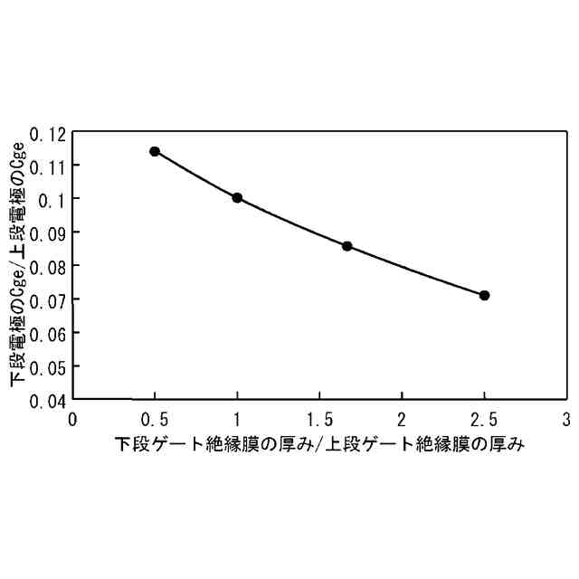 下段ゲート絶縁膜の厚み/上段ゲート絶縁膜の厚みと下段電極のCge/上段電極のCgeの関係を示す図である。