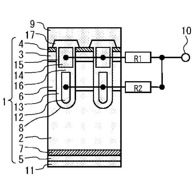 【解決手段】トレンチ8の内部で中間絶縁膜16により上段電極14と下段電極12が分離されている。第1の抵抗R1が上段電極14と入力端子10の間に接続されている。第2の抵抗R2が下段電極12と入力端子10の間に接続されている。下段電極12のゲート・エミッタ間容量が上段電極14のゲート・エミッタ間容量より小さい。