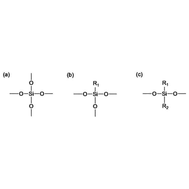 Si-NMRのDD-MAS測定において、全ケイ素原子に対する、下記ユニット(a)の状態で存在するケイ素原子の割合をXa(%)、下記ユニット(b)の状態で存在するケイ素原子の割合をXb(%)、下記ユニット(c)の状態で存在するケイ素原子の割合をXc(%)としたとき、該Xa,Xb、及びXcが、下式(1)及び(2)を満たし、
