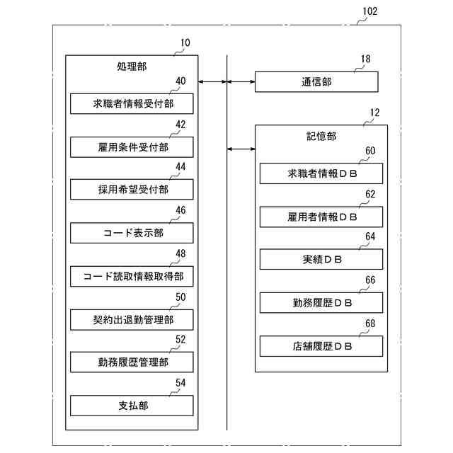 前記求職者端末又は前記雇用者端末により、前記雇用者端末又は前記求職者端末に表示された前記コードを読み取ることで、前記求職者端末又は前記雇用者端末からコード読取情報を取得するコード読取情報取得部と、