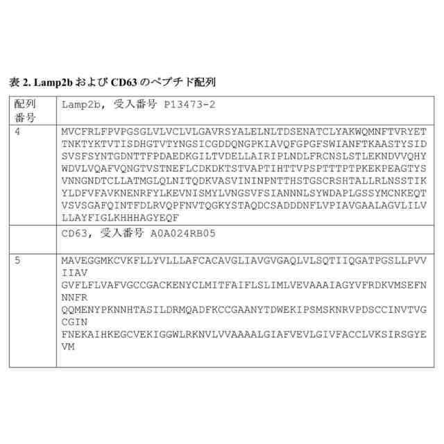 100μgのエキソソームをさらに含む。いくつかの実施形態では、前記組成物は、少なくとも150μgのエキソソームをさらに含む。いくつかの実施形態では、前記組成物は、少なくとも200μgのエキソソームをさらに含む。いくつかの実施形態では、前記組成物は、少なくとも250μgのエキソソームをさらに含む。いくつかの実施形態では、前記組成物は、少なくとも500μgのエキソソームをさらに含む。いくつかの実施形態では、前記組成物は、少なくとも750μgのエキソソームをさらに含む。いくつかの実施形態では、前記組成物は、少なくとも1mgのエキソソームをさらに含む。いくつかの実施形態では、前記組成物は、少なくとも2mgのエキソソームをさらに含む。いくつかの実施形態では、前記組成物は、少なくとも3mgのエキソソームをさらに含む。いくつかの実施形態では、前記組成物は、少なくとも4mgのエキソソームをさらに含む。いくつかの実施形態では、前記組成物は、少なくとも5mgのエキソソームをさらに含む。いくつかの実施形態では、前記組成物は、少なくとも6mgのエキソソームをさらに含む。いくつかの実施形態では、前記組成物は、少なくとも7mgのエキソソームをさらに含む。いくつかの実施形態では、前記組成物は、少なくとも100mgのエキソソームをさらに含む。いくつかの実施形態では、前記組成物は、少なくとも200mgのエキソソームをさらに含む。いくつかの実施形態では、前記組成物は、少なくとも300mgのエキソソームをさらに含む。いくつかの実施形態では、前記組成物は、少なくとも400mgのエキソソームをさらに含む。いくつかの実施形態では、前記組成物は、少なくとも500mgのエキソソームをさらに含む。いくつかの実施形態では、前記組成物は、少なくとも600mgのエキソソームをさらに含む。いくつかの実施形態では、前記組成物は、少なくとも700mgのエキソソームをさらに含む。いくつかの実施形態では、前記組成物は、細胞由来である。いくつかの実施形態では、前記組成物は、冷凍保存される。いくつかの実施形態では、前記組成物は、凍結乾燥される。いくつかの実施形態では、前記組成物は、37℃で24時間安定している。いくつかの実施形態では、前記組成物は、37℃で48時間安定している。いくつかの実施形態では、前記組成物は、37℃で72時間安定している。