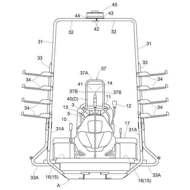 本発明は、前記走行車体の運転座席の上方を覆うルーフ部材を有するキャノピーを備え、前記受信ユニット支持部として前記キャノピーの前記ルーフ部材が用いられても良い。
