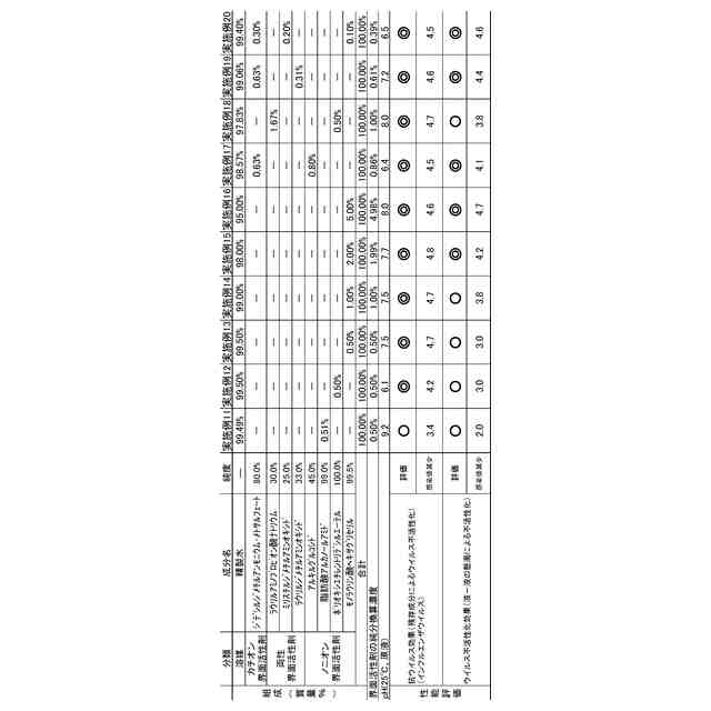 一方、「ウイルス不活性化」とは、次に示すような懸濁試験で確認される効果をいう。液状の組成物にウイルス液を添加し、一定時間作用後のウイルス感染価を測定する試験方法である。標準の試験方法として、ASTM1052に規定されている。ウイルス不活性化剤は、対象物表面や液中等にすでに存在しているウイルスに接触作用させることで、直ちにウイルスを不活性化できる薬剤である。なお、上記非特許文献1は、実質的に、「抗ウイルス」の効果ではなく「ウイルス不活性化」の効果を評価するものであった。