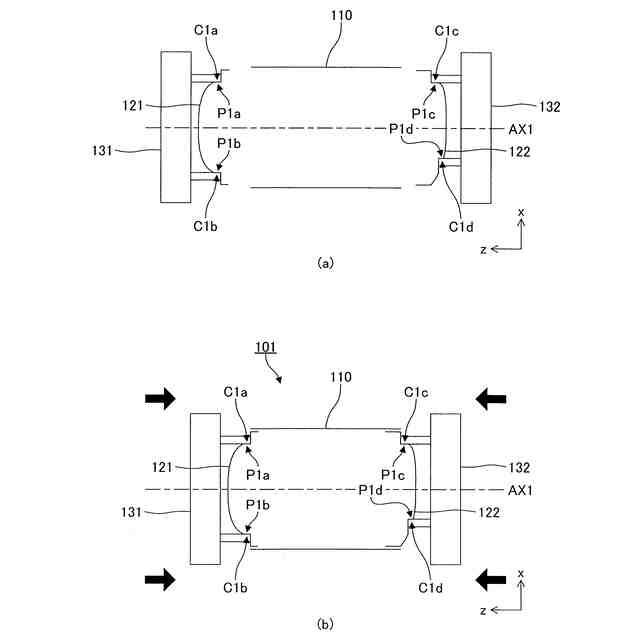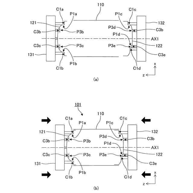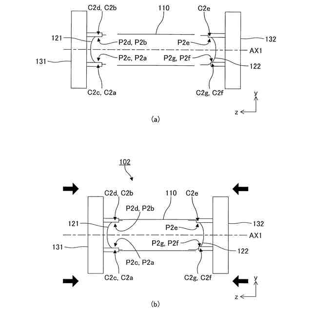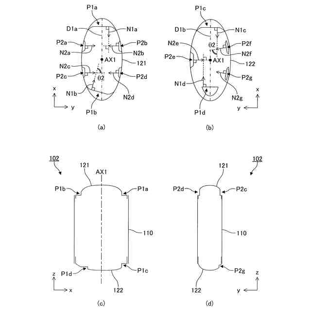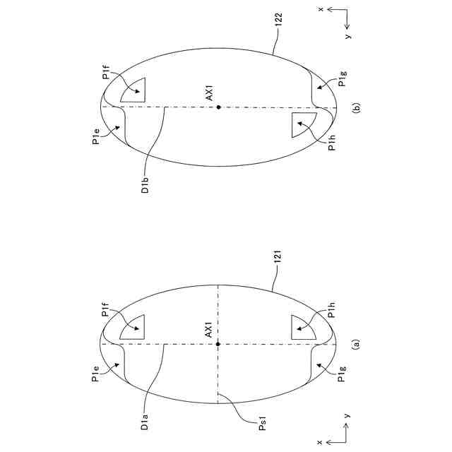 前記第1径を含み且つ前記第1軸に平行な平面を対称面とする面対称となる位置関係にある前記第2平面の対、及び/又は、