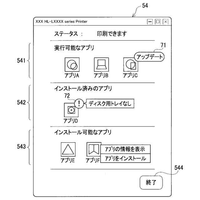 また、プリンタを利用可能な種々のアプリケーションプログラム(アプリ)が知られ、さらに複数のアプリを管理するアプリも知られている。例えば特許文献1には、アプリを管理するアプリ管理部と、プリンタを管理するプリンタ管理部とを備える情報処理装置であって、選択されたアプリに対応するプリンタの現在の状態を表示する構成が開示されている。