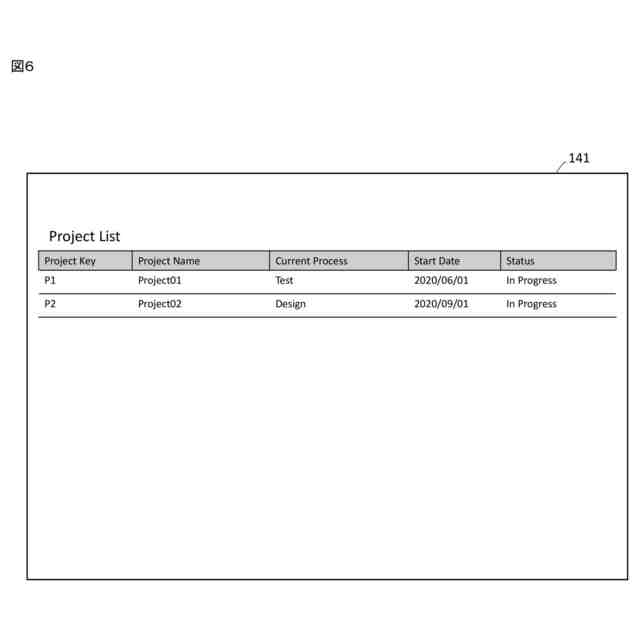 ディスプレイに表示されるプロジェクトリストの例を表す模式図である。
