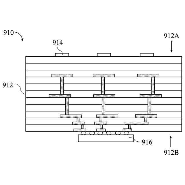 前記コアと前記多層回路構造の第1の表面との間に配置された第1の数の第1の相互接続層と、