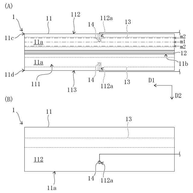(A)熱シール装置が備えるシールバーをシール面側から平面視した図、及び(B)当該シールバーを上端面側から平面視した図である。