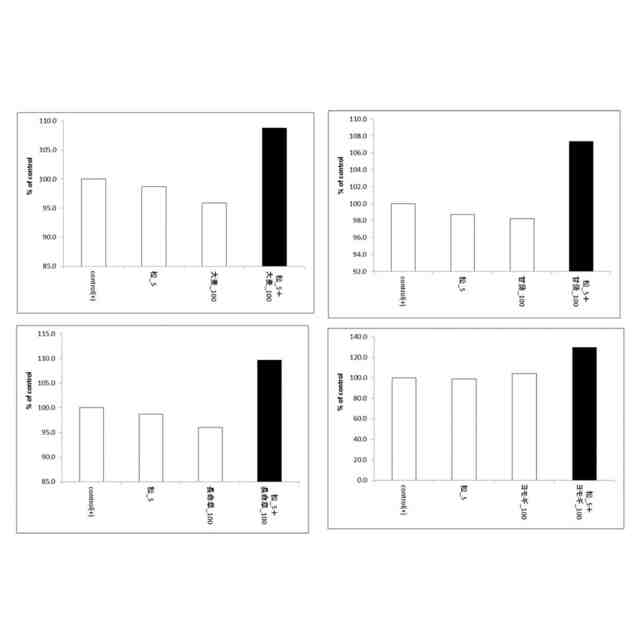 (b)大麦、甘藷、長命草、ヨモギ、葛、黒ショウガ、及び稲から選ばれる少なくとも1種の植物素材