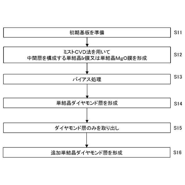 上記目的を解決するために、本発明は、単結晶ダイヤモンド積層基板用の下地基板の製造方法であって、初期基板を準備する工程と、前記初期基板上に少なくとも単結晶Ir膜又は単結晶MgO膜を含む単層又は積層膜からなる中間層を形成する工程とを有し、前記中間層を構成する単結晶Ir膜又は単結晶MgO膜の形成を、ミストCVD法を用いて行うことを特徴とする下地基板の製造方法を提供する。