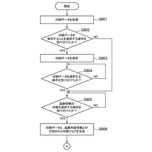 前記制御部は、前記印刷ジョブを保存した保存時についての追跡情報及び前記印刷ジョブを実行する実行時についての追跡情報からユーザの操作により選択された追跡情報に基づく画像を、前記印刷データに基づく画像に付加して印刷する処理を実行する