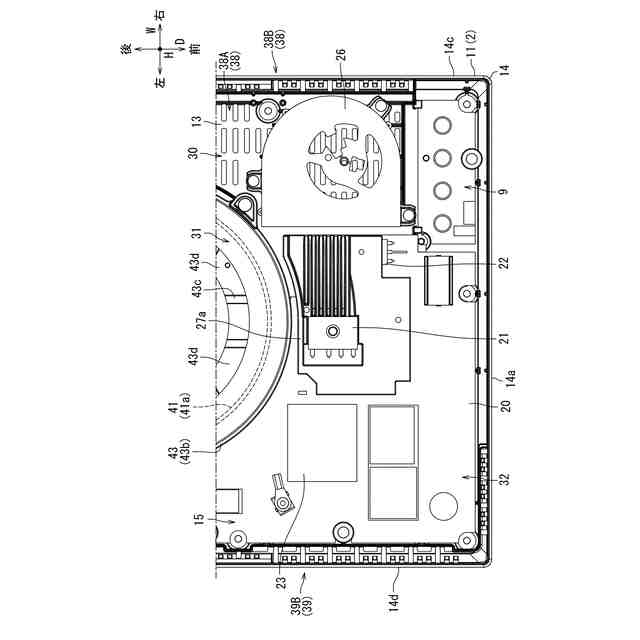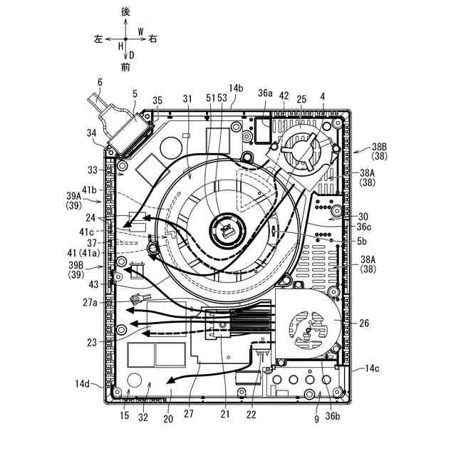 前記内部空間が、前記第1ファンの入口と、前記第2ファンの入口との双方が開放されている共通吸気空間を含み、前記吸気口が、前記ケーシングの複数の部位に設けられ、前記共通吸気空間に開口する、