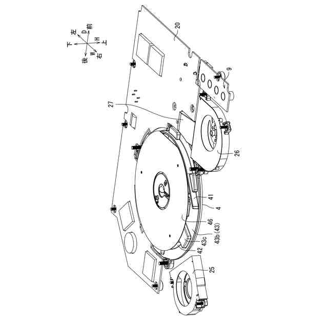 第1空間及び第2空間を含む内部空間を形成するケーシングと、