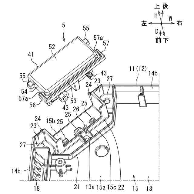前記内溝の端部が、平面視で前記電装品空間の外で開放される、