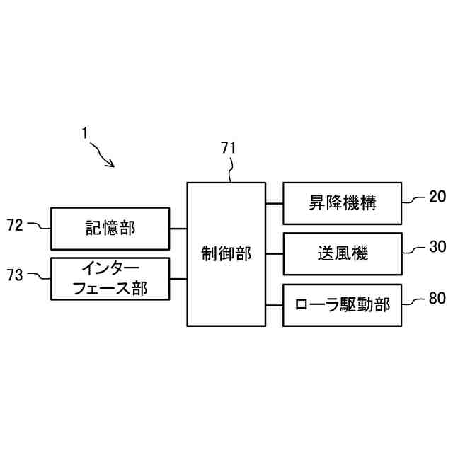 前記制御部は、前記媒体の種類に基づいて、前記送風機の風量を調整する