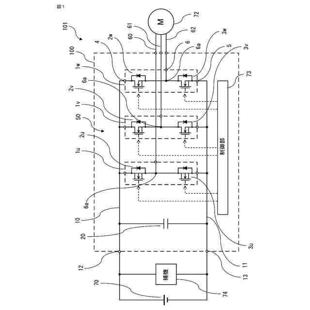 昨今、ハイブリッド自動車、プラグインハイブリッド自動車、電気自動車、及び燃料電池車といった、電動パワートレインを搭載した自動車(以下、電動化車両と称す)が普及している。電動化車両には、従来の内燃機関を動力源とした車両の構成に加えて、又はその代替えとして、車輪を駆動するための回転電機と当該回転電機を駆動するための電力変換装置であるインバータ回路が搭載されている。電動化車両では、走行時に回転電機を力行運転して走行駆動トルクを発生させ、制動時に回転電機を回生運転して回生制動トルクを発生させている。