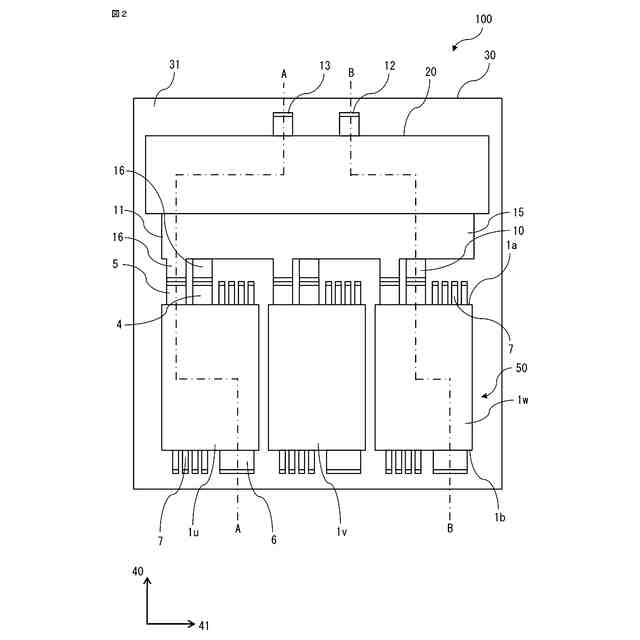 【解決手段】正極側のスイッチング素子及び負極側のスイッチング素子を有し、双方の素子の接続部から交流が出力される一相分のアームが複数設けられ、複数相のアームが形成された電力変換部と、交流を停止する場合に、正極側のスイッチング素子の全てをオンし負極側のスイッチング素子の全てをオフする相短絡信号、又は負極側のスイッチング素子の全てをオンし正極側のスイッチング素子の全てをオフする相短絡信号の何れかを出力する制御部と、全てがオンされる複数の正極側のスイッチング素子の間又は負極側のスイッチング素子の間を接続した第一配線と、全てがオフされる複数の正極側のスイッチング素子の間又は負極側のスイッチング素子の間を接続した第二配線と、を備え、第一配線の熱抵抗は、第二配線の熱抵抗よりも小さい。