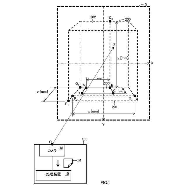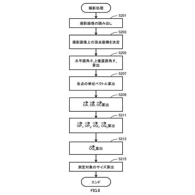 前記演算は、前記測定対象の対象点の前記撮影画像における座標、前記撮影画像のサイズ、及び前記カメラの画角から得られる、前記カメラの位置に基づく原点から前記対象点に向かう向きの単位ベクトルを算出する、ことを含む