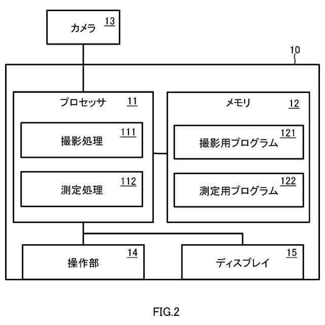 前記処理部は、前記カメラによる前記測定対象の撮影の際に、前記基準物体が前記測定対象に対して前記演算に必要な位置に設置されるようガイドする、ように構成されている