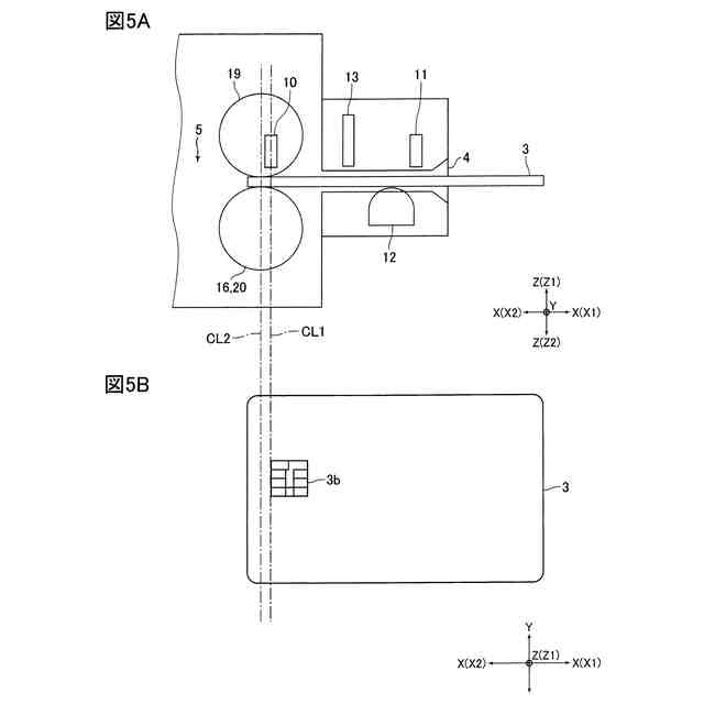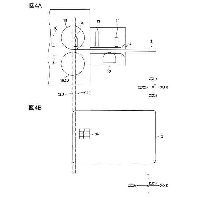 前記カード搬送機構が複数の前記搬送ローラ対を備えている場合、複数の前記搬送ローラ対のうちの最も手前側に配置される前記搬送ローラ対を第1搬送ローラ対とし、前記カード搬送機構が1個のみの前記搬送ローラ対を備えている場合、この1個の前記搬送ローラ対を第1搬送ローラ対とすると、