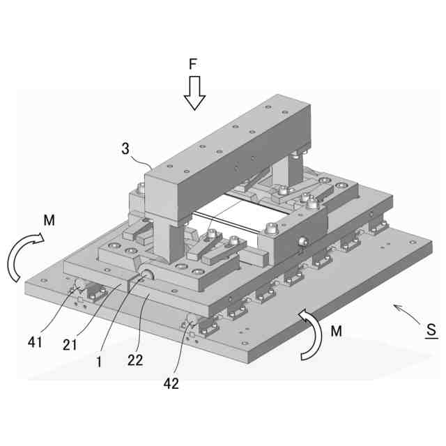 本発明者は鋭意研究した結果、ヒンジ機構を利用して試験片を曲げることを着想し、その具現化により曲げ試験を適切に行なうことに成功した。この成果を発展させることにより、以降に述べる本発明を完成するに至った。
