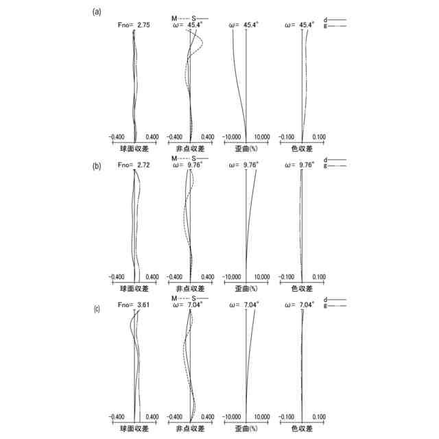 数値実施例5のズームレンズの(a)広角端、(b)f=38.0mm、(c)望遠端で無限遠合焦時の収差図である。