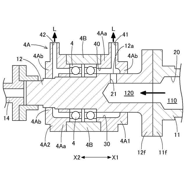 前記第一軸受に前記冷却流体を供給する第一供給路と、