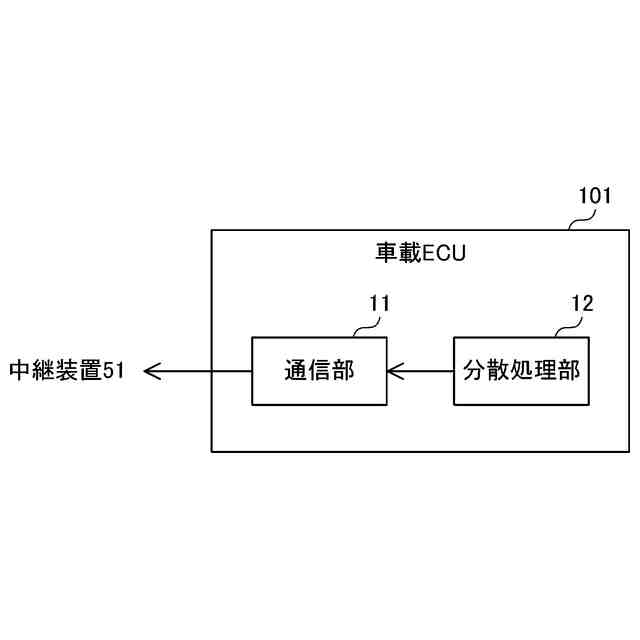 本開示の一態様は、このような特徴的な処理部を備える車載システムとして実現され得るだけでなく、かかる特徴的な処理をステップとする通信方法として実現され得たり、かかるステップをコンピュータに実行させるためのプログラムとして実現され得る。また、本開示の一態様は、このような特徴的な処理部を備える車載装置として実現され得るだけでなく、かかる特徴的な処理をステップとするデータ分散方法として実現され得たり、車載装置の一部または全部を実現する半導体集積回路として実現され得る。また、本開示の一態様は、このような特徴的な処理部を備える車載装置として実現され得るだけでなく、かかる特徴的な処理をステップとするデータ復元方法として実現され得たり、車載装置の一部または全部を実現する半導体集積回路として実現され得る。