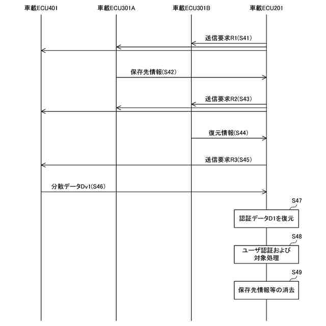 図5は、本開示の実施の形態に係る車載ECUが認証データを復元する際の動作手順の一例を定めたフローチャートである。