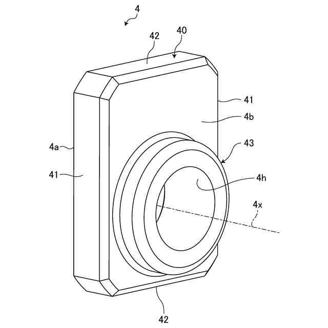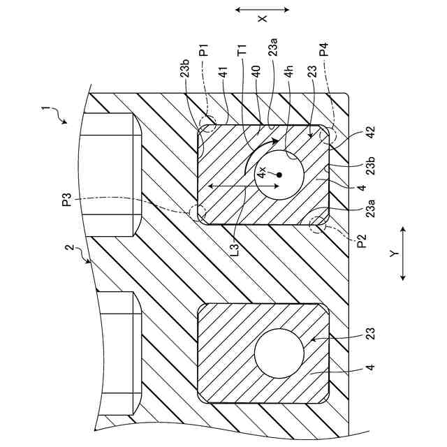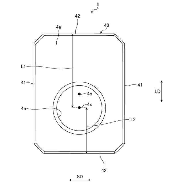 前記ナットは、前記長辺および前記短辺を有する長方形の本体と、前記本体から前記中心軸線の方向に突出した突出部と、を有し、