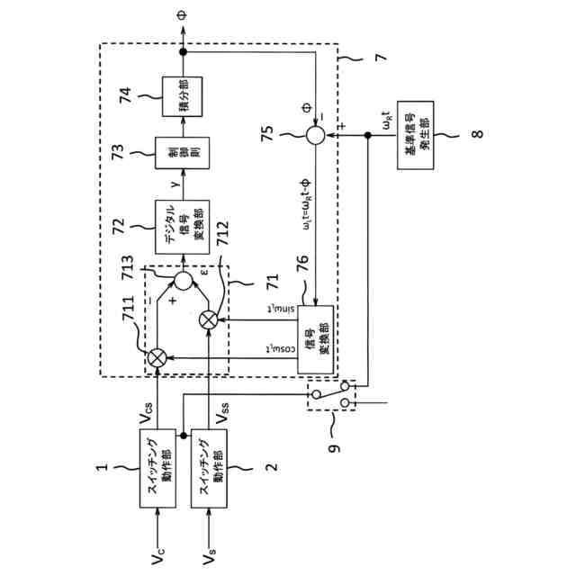 前記位相ロック部(4、5、7)の入力側に設けられ、前記一対の角度検出信号が入力されるスイッチング動作部(1、2)と、