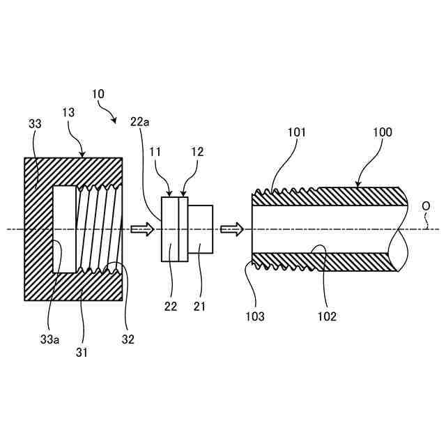 例えば、配管の端部に噴射ノズルが装着された噴射装置は、内部に高圧の噴射流体が供給されることから、配管の耐圧試験を実施する必要がある。配管の耐圧試験は、配管の端部に耐圧用キャップを装着して閉止し、配管の内部に高圧ガスを供給して加圧することで実施する。この場合、耐圧用キャップは、配管の端部に形成されたねじ部により連結されることから、内部の高圧ガスがねじ部から漏れやすいという課題がある。このような課題を解決するものとして、例えば、下記特許文献1に記載されたものがある。