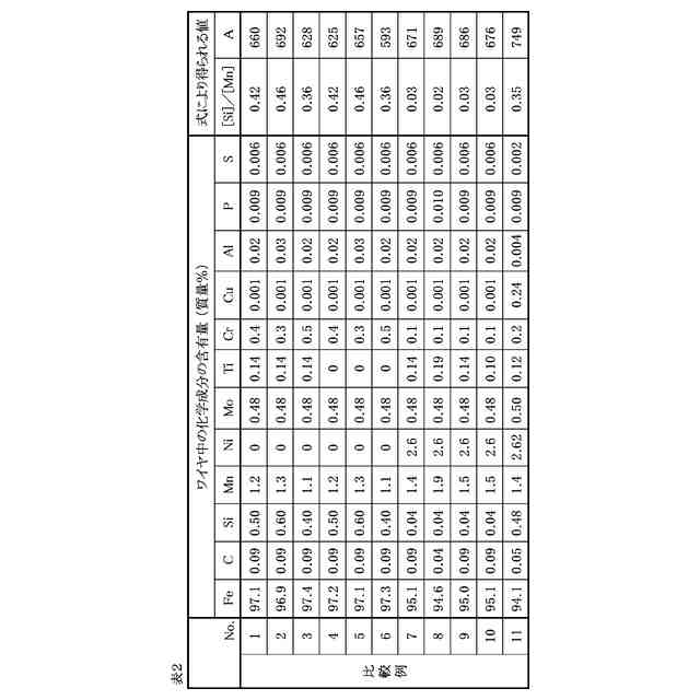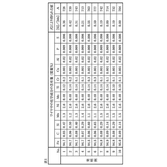 ワイヤ中の前記Mnの含有量をワイヤ全質量に対する質量%で[Mn]、