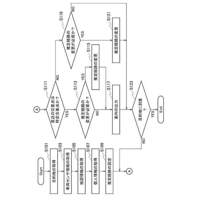 図2は、一実施形態に係る交差点進路案内装置による交差点進路案内処理の処理手順を示すフローチャートである。