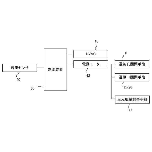 車室内に配置されるシートの内部に設けられ、該シートの下部に設けられた通風口と接続する空気の通路と、