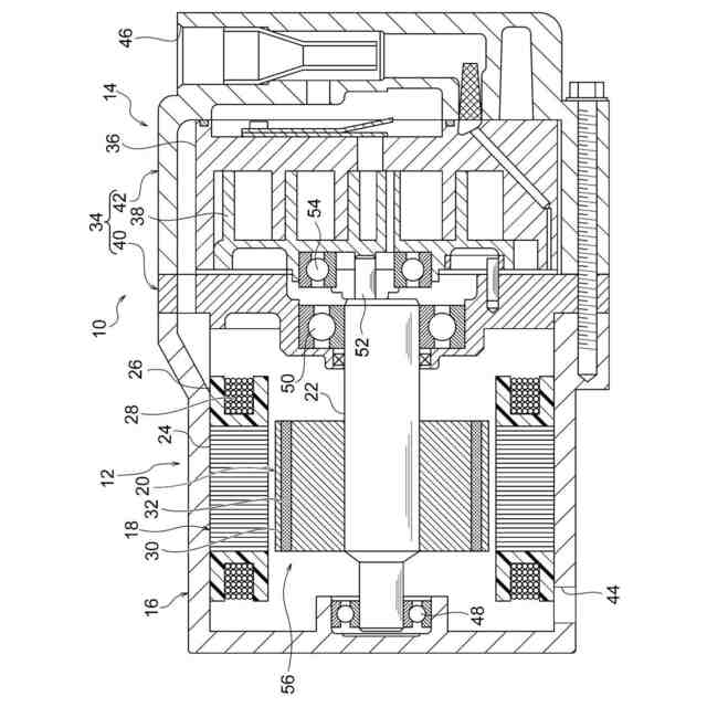 前記モータハウジングに対して組み付けられたコンプレッサハウジング(34)と、