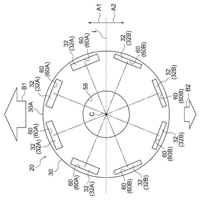 前記複数のマグネットは、第1マグネット(32A)と、前記第1マグネットとは厚み、幅、及び角度ピッチの少なくとも何れかが異なる第2マグネット(32B)とを含む、