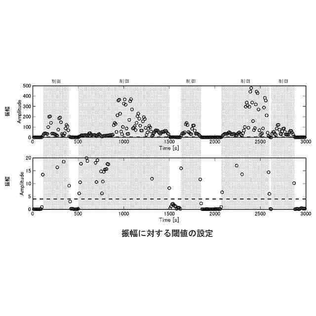 算出したフーリエスペクトルの最大振幅に閾値を設定し、フーリエスペクトルの最大振幅が閾値以上かどうかを判定し、