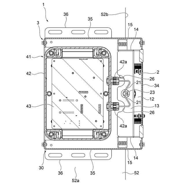 本発明の冠水検出ユニット1を構成する無線ユニット3の構造を概略的に示す上側から見た斜視図である。