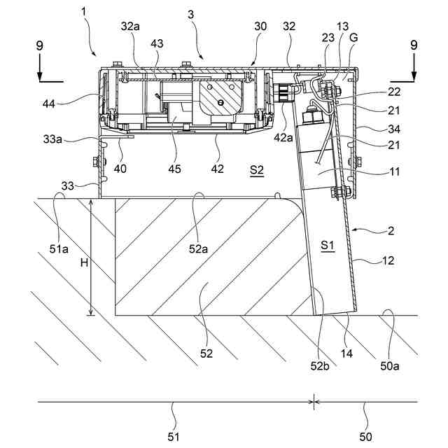 図8に対応し、冠水検出ユニット1のさらに他の使用態様を説明するための断面図である。