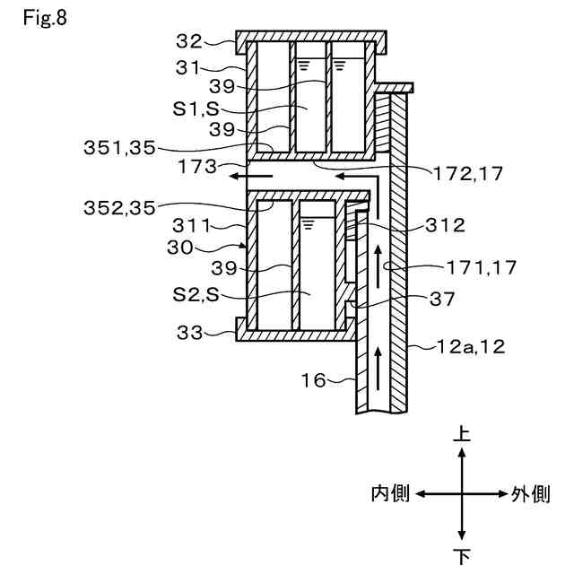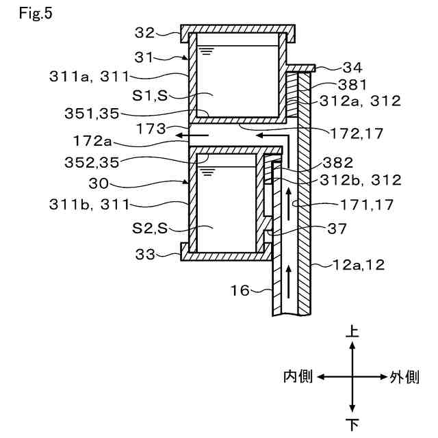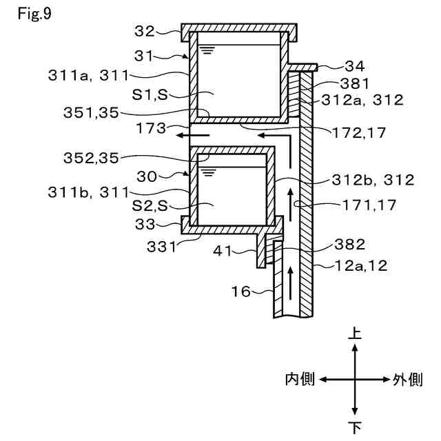 前記バランスリングは、前記液体が通過可能な中空状に形成され前記上側空間と前記下側空間とを連通する連通部を更に有する、